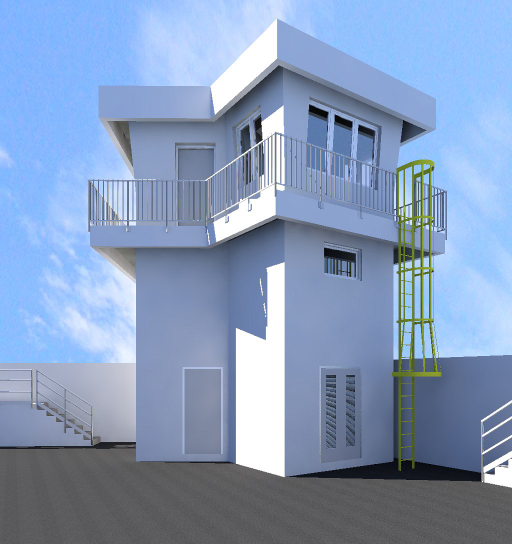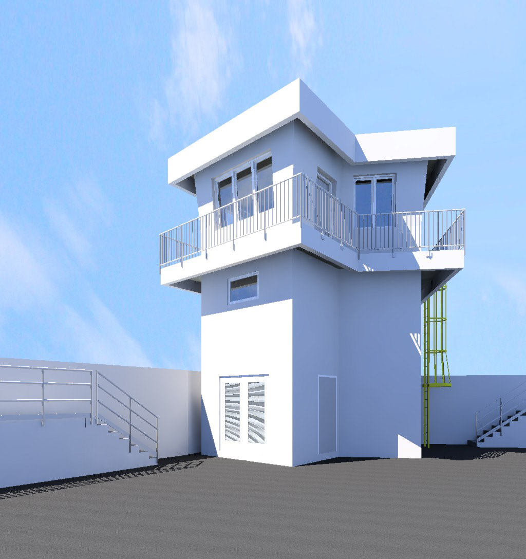 The proposed new home of the Bridgetown Port Signal Station. The building is a 3 storey control tower located just inside the seawall.